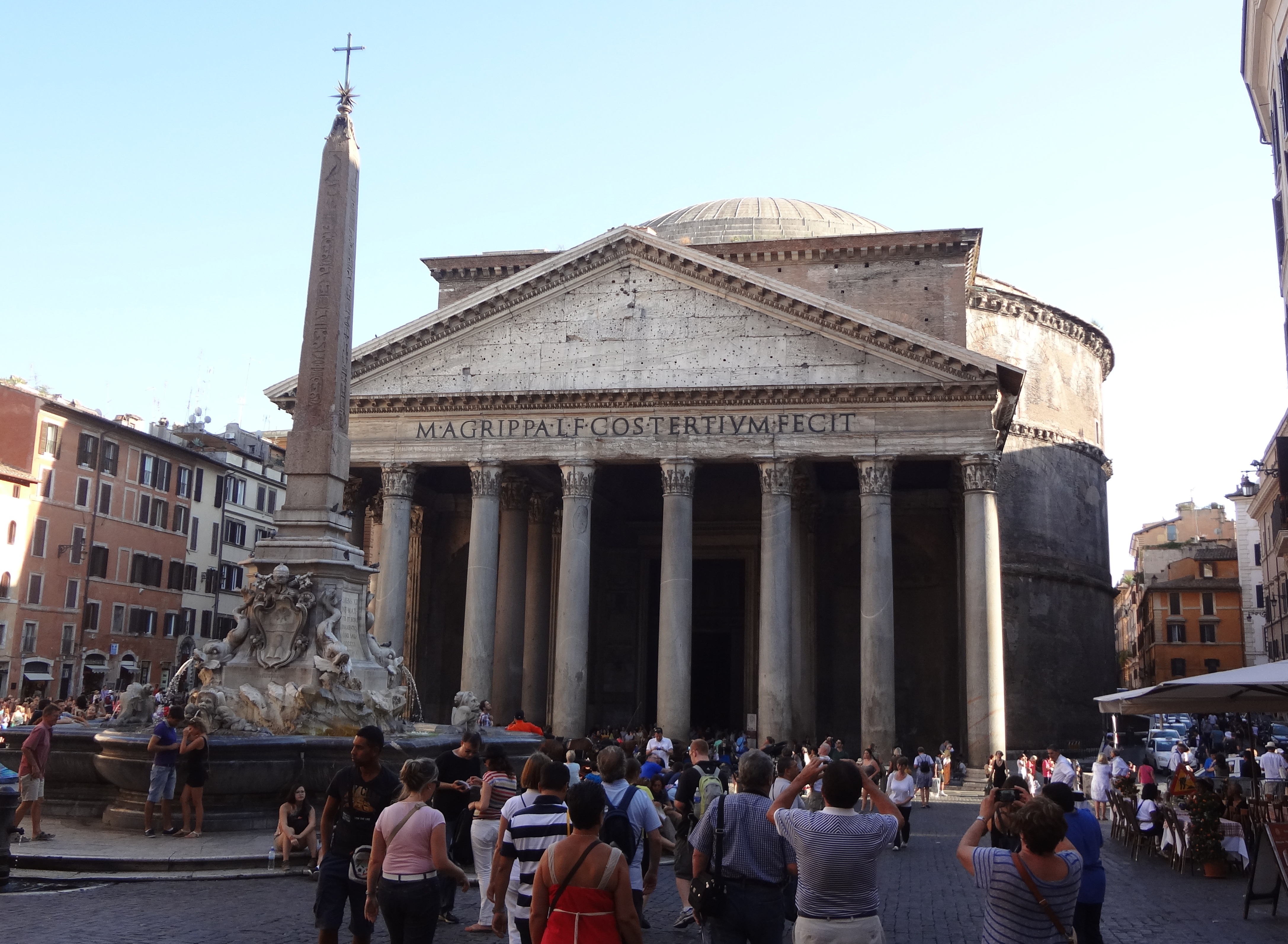當年初訪羅馬,踏進萬神廟前,先在外面駐足觀賞,凝視片刻後,略感失望,心感其外觀雖恢宏,但歲月滄桑,己顯得垂垂老矣,正面三角牆上的浮雕已不復存在,牆壁變得灰灰蒙蒙。納悶不已,大惑不解,古羅馬建築遍佈意大利全國,此萬神廟其貎不揚,講霸氣不及競技場,論規模遠遜圖拉真市場,而相比羅馬廣場之氣勢磅礴,萬神廟亦遠遠瞠乎其後,為何如此享負盛名?