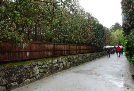 進入銀閣寺要先經過一條筆直的參道,參道兩旁以石垣、竹籬笆及山茶花樹將訪客與參道外的世界阻隔開,目的是提醒訪客,他們正從紅塵走入淨土世界,進入淨土前,必先收拾心情、沉殿心神,放下繁塵俗世的雜念。