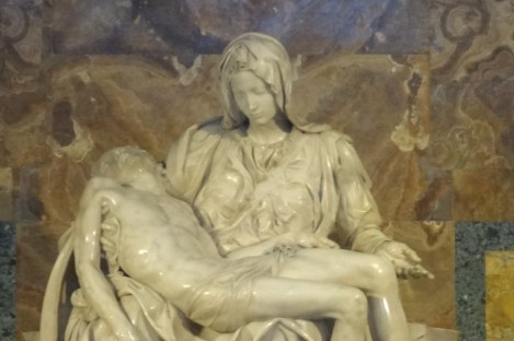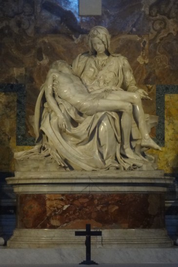 逗留羅馬期間, 米開朗基羅創作了數件傑作,其中包括其成名作《聖殤》(Pieta)。這件作品乃受法國紅衣主教委托而創作,作為自己未來陵墓的雕塑建築。現時豎立在梵蒂岡聖彼得教堂內。