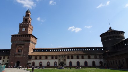 斯福爾扎城堡(Castello Sforzesco)是米蘭市的地標城堡原建於14世紀,昔年乃統治者斯福爾扎家族的居所。為了抵禦法國人及威尼斯人的入侵城堡曾數度加固擴建達文西(Leonardo da Vinci)也曾參與改建工程,巍峨壯觀的城牆見證了風雲幻變的歲月。