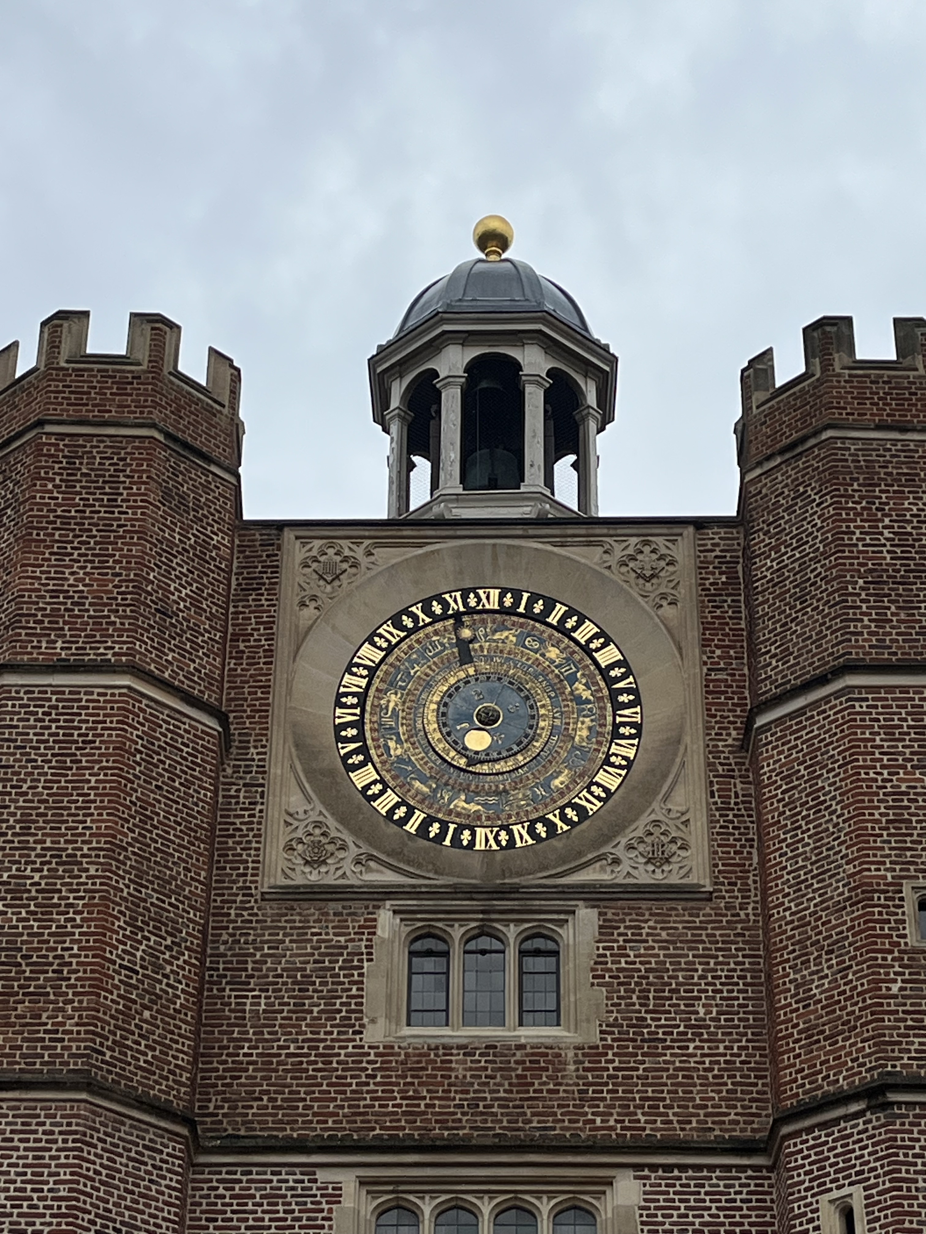 內院最引人注目處就是門樓上鑲嵌的天文鐘。建於1540年,天文鐘至今仍在運轉,不但可指出時間,更可顯示月相、月份、季度、日期、太陽和星座以及潮汐。當年從倫敦市中心前往漢普頓宮大多倚賴水路,因此潮汐時間對兩地交通非常重要。