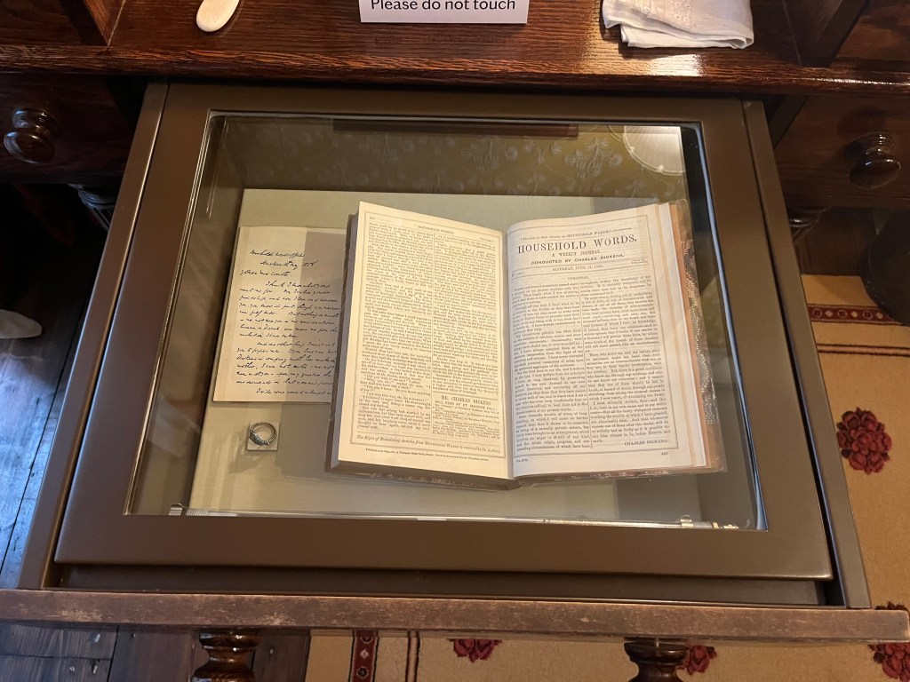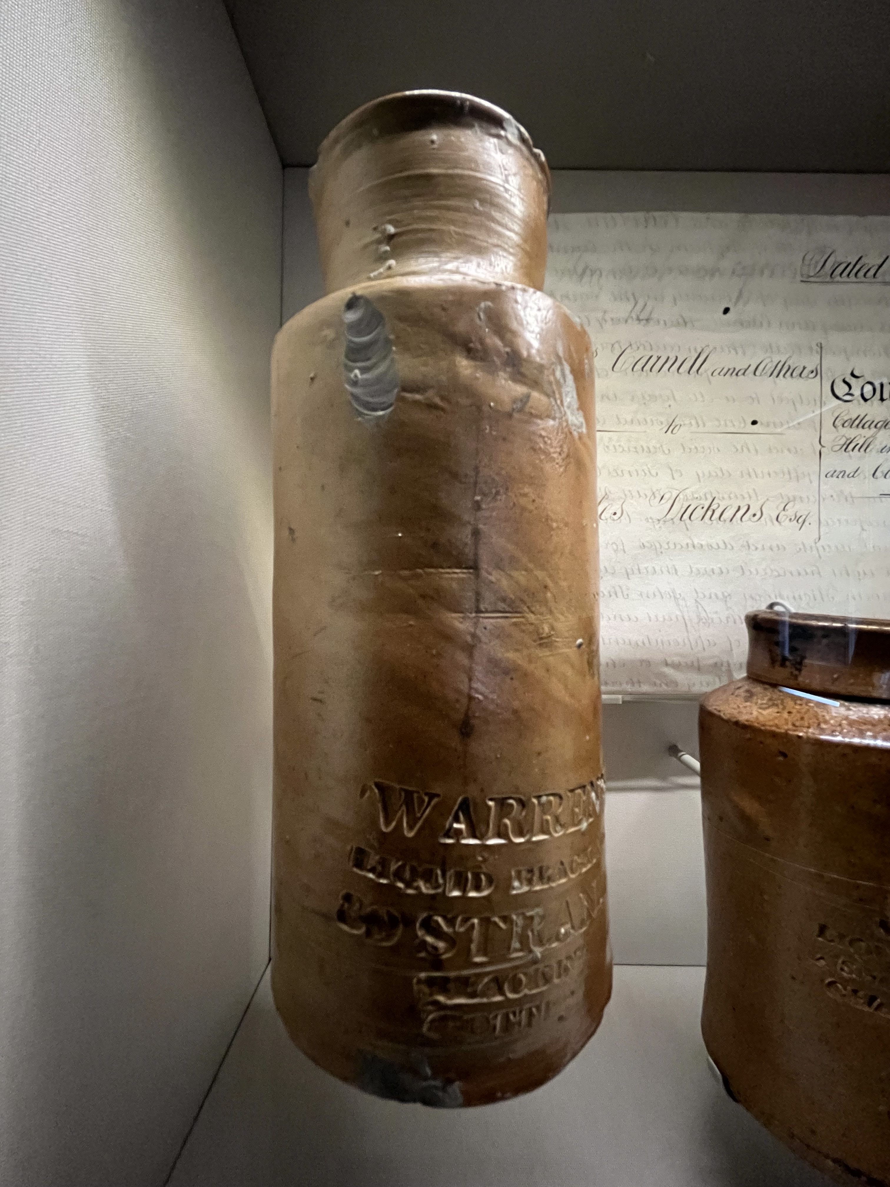 博物館展出不少狄更斯生前個人物品包括藏書、手稿、信札、衣物、手仗、公事包、傢俬、房間擺設等。令我比較印象深刻的是兩個鞋油瓶子,此兩瓶子娓娓道出大文豪的一段童年往事⋯⋯